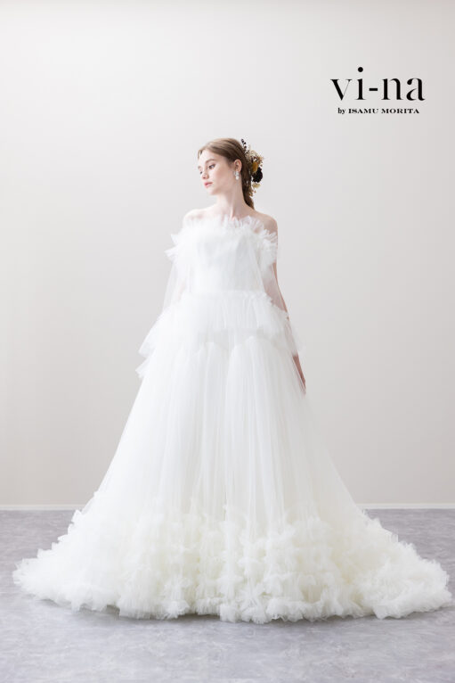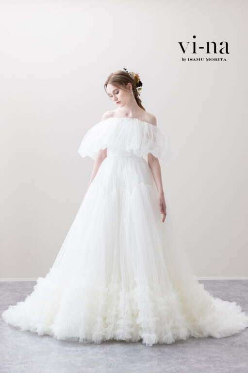 他には、チュールもオフショルダーも外して着用もできます!すっきりとした印象になり、裾のデザインが際立ち素敵ですよ♡